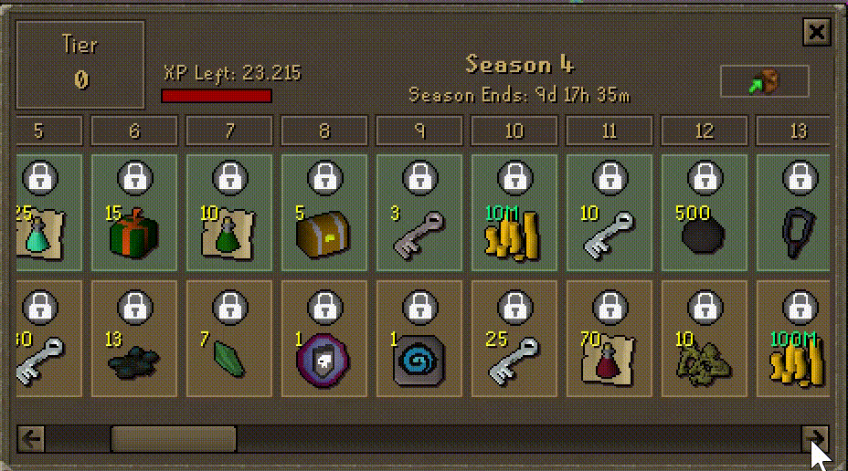 As you begin training your skills (botting Pest Control still gives you experience) more actively you will starting gaining experience to your Battle pass which has an abundance of rewards. The Battle pass resets every month and can be claimed on up to 3 accounts per player. The premium Battle pass is available as well and so are the resets for it. To access your Battle pass simply do ::bp to see and claim the rewards. It's very handy for new ironman accounts due to it providing a lot of useful items.