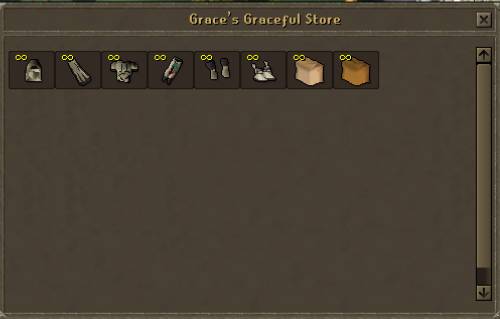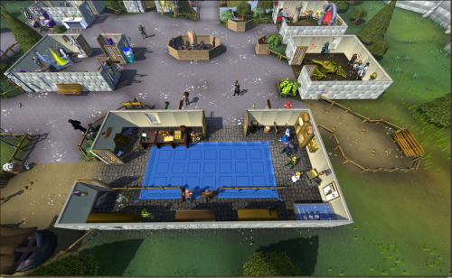 To the south of the Grand Exchange and Bank there are different shops which will be talked about later, the Sell Me Store, Code Master, Perdu, and a Max Cape.