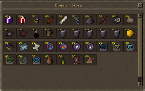 The Donator Store has items that can be purchased with Donator points that will help boost your gameplay. ($ scrolls can be bought from other players in game or from donating via the online store).
